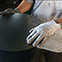 We used to use cheap cotton gloves.They break easliy and cut hands.